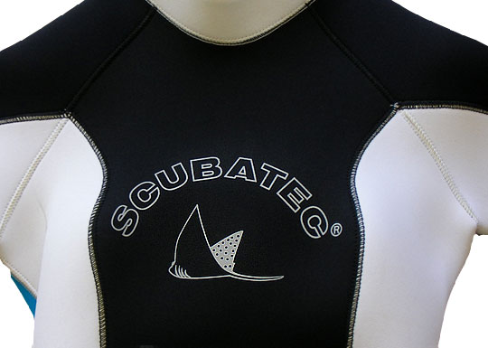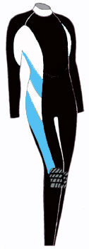| 男性デザイン: | 胸板が厚く見えるように強調し、足が長く見えるように膝上までにデザインをまとめ、上半身を強調するデザインです。白は汚れる色ではなく全身のカラー(スーツ以外の器材)とのバランスを取る色で、人気の高いブルーと最近インストラクターを含め人気のあるレッドを使ったデザインになっています。 →→<デザイン確認> |